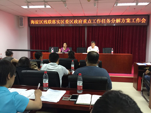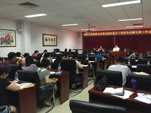 2016年6月23日下午,“海淀区残联落实区委区政府重点工作任务分解方案工作会”在区残联举行,全区29个镇、街道残联的理事长及相关工作人员共计60人参加了会议。