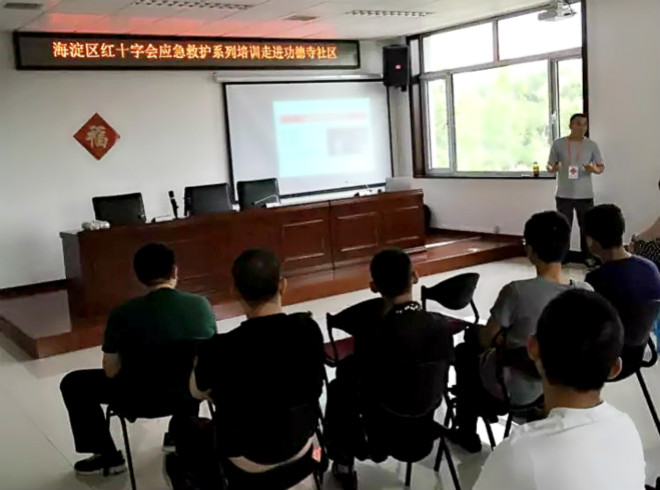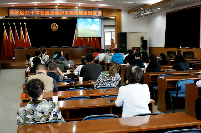 为普及红十字应急救护知识,提高辖区群众的急救能力,近期,海淀区红十字会在海淀镇举办了4期应急救护培训班。共有300余名机关工作人员和社区居民参加了培训。
