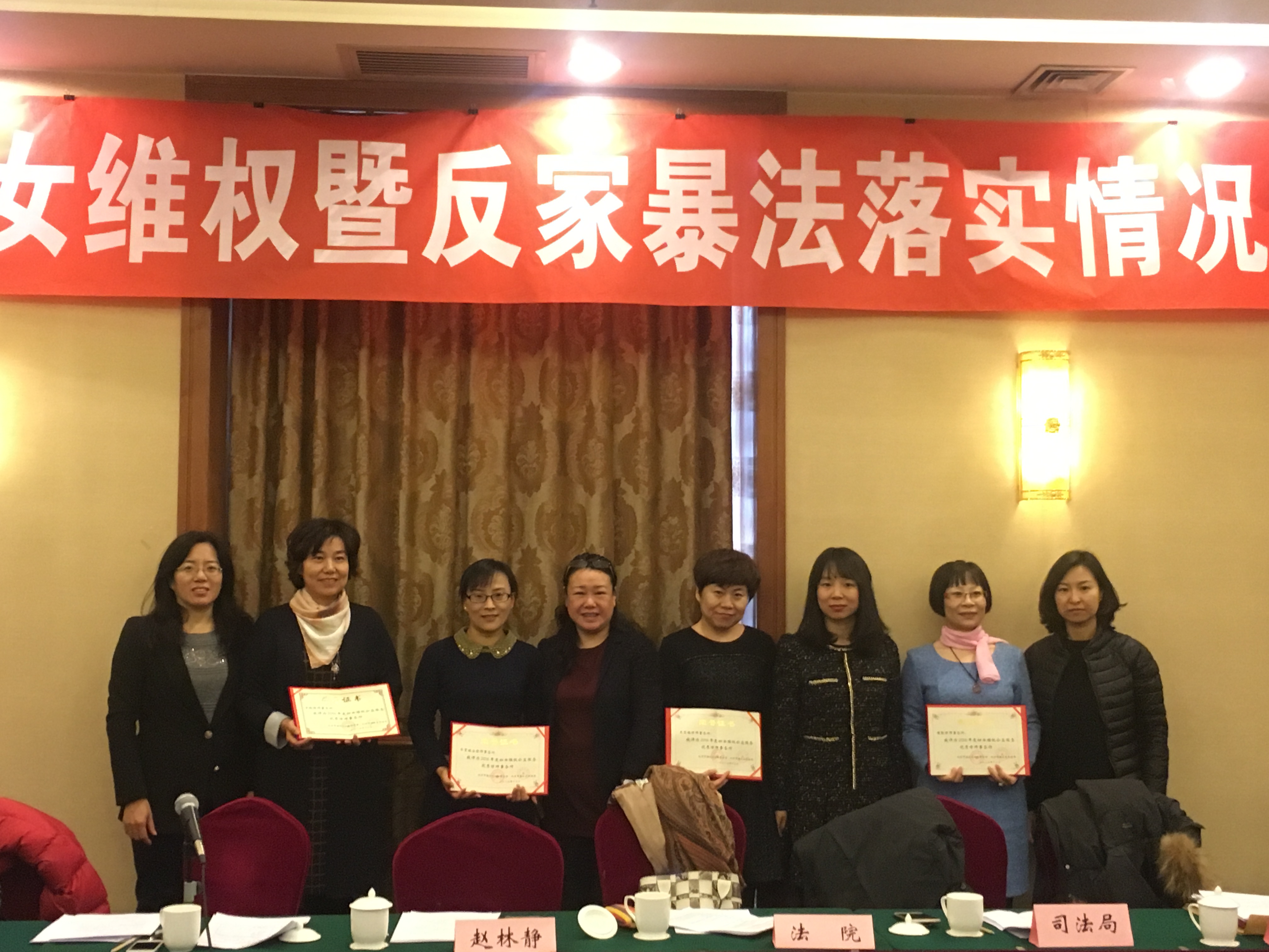 12月22日,海淀区妇联在皇苑大酒店召开“2016年度妇女维权暨反家暴法落实情况工作总结会”,区公安局、法院、司法局干部,街道镇妇联主席及与妇联签订服务协议的11家律师事务所的律师代表到场参加活动。