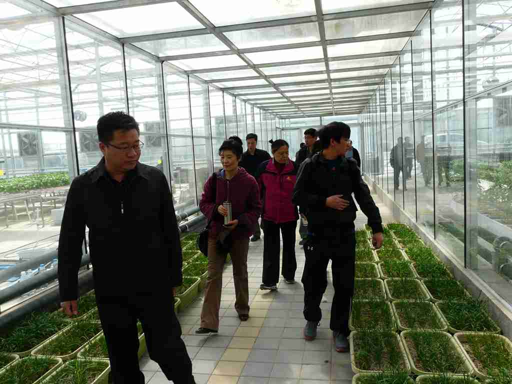 在座谈会后,与会人员来到柳林村农业园区参观,在参观过程中大家不断交流。李春玲要求科技人员要根据柳林村实际需求认真制定好蔬菜种植计划,并及时提交柳林村,要求科技人员与柳林村农业生产技术人员保持密切沟通,一旦日光温室改造完成,立即开展全方面合作。