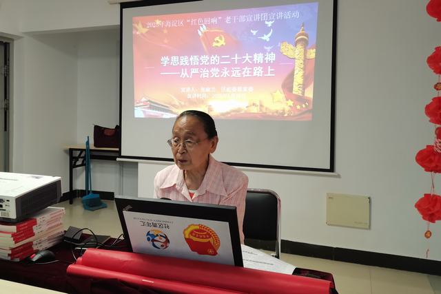 为进一步发挥离退休干部作用,持续深入学习贯彻宣传习近平新时代中国特色社会主义思想和党的二十大精神,海淀区“红色回响”老干部宣讲团深入基层,围绕“党的二十大精神”“红色基因”“社会主义核心价值观”“革命情怀”“改革发展”等主题持续开展一系列红色宣讲活动。