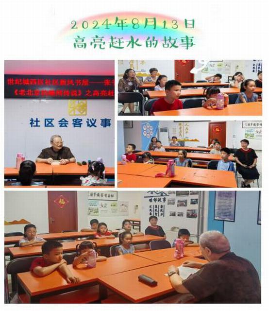 世纪城西区社区关工小组开展“张爷爷讲故事”暑期读书会系列活动,“五老”张振基为辖区青少年讲述《老北京的趣闻传说》。活动共设四期,讲述的故事分别《北京城为什么叫八臂哪吒城》《高亮赶水》《北京的五大镇物是什么又在哪里》《北京城门的俗语有哪些》,旨在传承优秀传统文化,增强青少年文化自信。