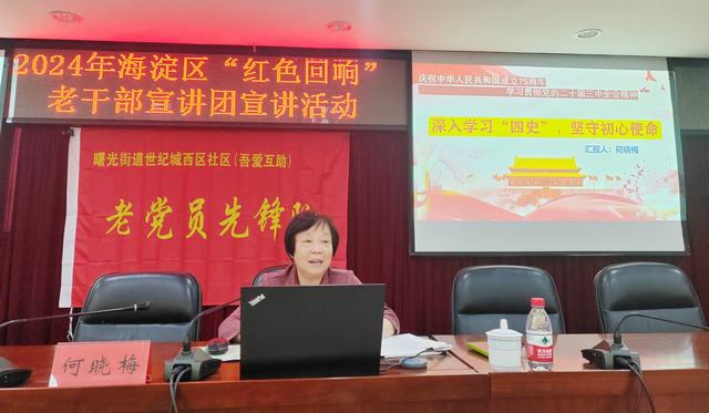 在这金秋送爽、硕果累累的美好时节,9月26日,海淀区“红色回响”老干部宣讲团走进曙光街道,宣讲团成员、区委党校原副教授何晓梅以《深入学习“四史” 坚守初心使命》为题,为社区的老党员进行党课宣讲。