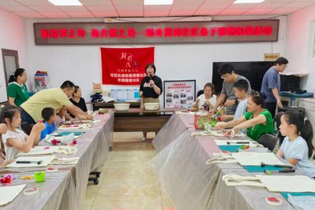 稻香园南社区关工小组举办了“植物拓染亲子活动”,让青少年与家长共同体验非遗技艺的魅力。作为一项环保简便的古老印染技艺,植物拓染取材自然、操作简单。在志愿者带领下,大家采集树叶与花瓣,通过捶打和拓印,将植物的形态与色彩保留在布料上,创作出独具自然美感的作品。“不用化学染料也能做出这么美的图案,自然的美真是动人,今天收获很大!”一位家长赞叹道。
