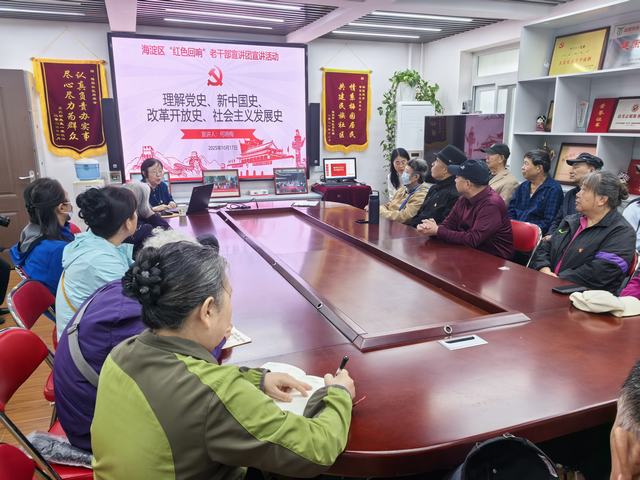 为纪念中国人民抗日战争暨世界反法西斯战争胜利80周年,推动“四史”学习教育走深走实,10月17日上午,海淀区“红色回响”老干部宣讲团走进马连洼街道梅园社区。宣讲团成员、海淀区委党校原副教授何晓梅以《理解党史、新中国史、改革开放史、社会主义发展史》为题宣讲,社区30余名老党员、居民代表参加。