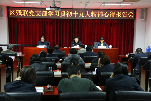 2017年12月22日上午,区残联党支部召开2017年度“两学一做”学习教育第四季度心得交流大会暨学习贯彻十九大精神心得报告会。会议由党支部副书记陈秀玲同志主持,党组书记、党支部书记、残联理事长张春华同志作了讲话。