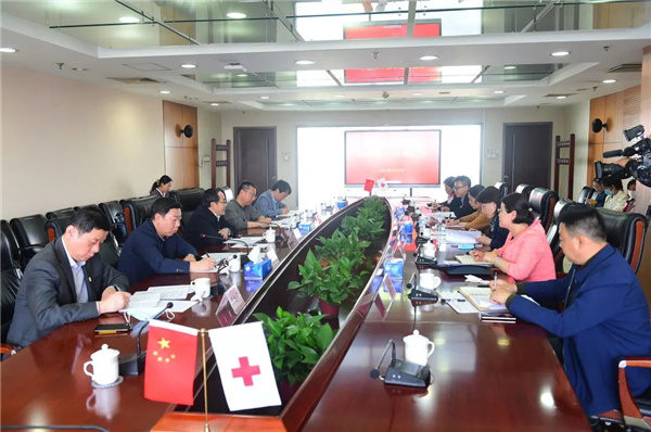 随后,一行人来到海淀区红十字会,召开座谈会,观看工作总结片,听取工作汇报,进行座谈交流,北京市红十字会秘书长张立军主持会议。