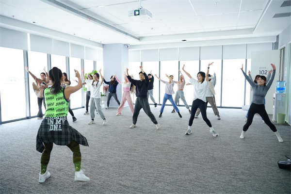 除了图书交换,热情洋溢的尊巴课程也受到快手女职工的喜爱。现场气氛热烈,在专业教练的带领下,大家身着轻便舒适的运动服和运动鞋,尽情释放自己的能量。