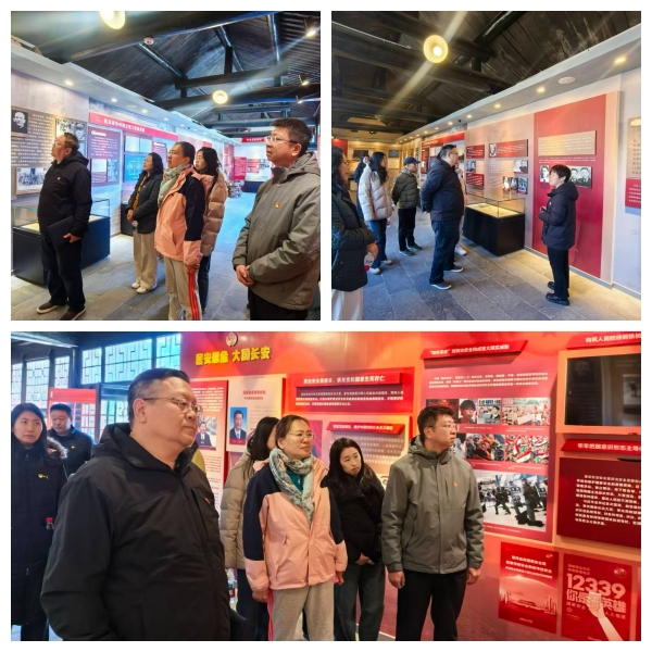 在讲解员的引导下,党员们依次参观了展室。泛黄的文献资料、锈迹斑斑的电台设备、复刻的秘密交通路线图,生动再现了情报人员乔装卧底、秘密发报、运送紧缺物资的惊险历程。杨凤兰同志将情报藏于脚趾下往返三四十里山路传递信息,苏静同志以假夫妻身份为掩护在山洞中坚守发报岗位,站长梁波为保护机密文件壮烈牺牲……一个个感人至深的革命故事,让党员们真切感受到隐蔽战线工作者“隐蔽精干、长期埋伏”的坚定意志和“为国牺牲、无怨无悔”的家国情怀。大家不时驻足凝视、交流感悟,在珍贵文物与历史场景中,深刻体会到革命先辈在艰苦卓绝的环境中坚守信仰、奋勇拼搏的崇高精神。