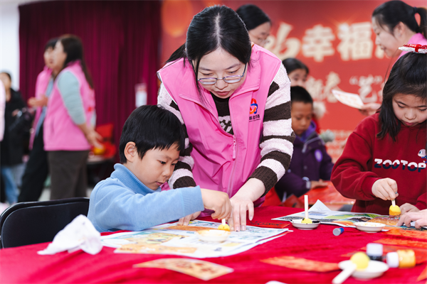 活动现场设置了写春联福字、制作中国结、传统拓印、剪纸、猜灯谜、传统养生保健和套圈等趣味环节。海淀区手工艺和传统文化发展促进会和区妇儿中心“海之艺”志愿者们准备了文化礼包,手把手指导大家体验传统手工艺。在一穿一绕、一拓一剪间,感受千年文化的魅力,让指尖留住浓浓年味儿。家庭成员和志愿者们挥毫泼墨,将满满的新春祝福凝于笔端,一笔一画勾勒美好期许,一副副春联、一个个福字,都是最真挚的新年期许。海淀区女企业家协会为家庭们准备了一份健康心意,从冬季的养生知识到春节的注意事项,现场答疑解惑传授传统养生方法,传递健康理念。传统灯谜玩出新花样,将生活垃圾分类知识与传统节日文化巧妙融合,既能体验猜谜的乐趣,又能轻松get环保小常识。在欢声笑语中践行绿色理念,为美丽海淀建设添砖加瓦。摄影志愿者捕捉着家庭团聚的温馨瞬间,记录父母孩子的灿烂笑容。每一张都是自带氛围感的年味大片,把新年的幸福模样永久珍藏。