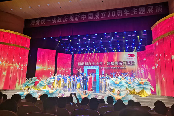 9月6日下午,同心同行七十年·建功海淀新发展——海淀统一战线庆祝新中国成立70周年主题展演活动在中国人民大学如论讲堂成功举办。中共北京市委统战部副部长祁金利,中国人民大学党委副书记郑水泉,中共海淀区委常委、组织部部长、统战部部长周志军,海淀区人大常委会副主任杨莉,海淀区政协副主席刘恪出席活动。海淀区各民主党派主委副主委及成员代表、民族宗教界代表、非公经济人士代表、台商台生代表、侨界代表,海淀区党外知识分子联谊会、新的社会阶层人士联谊会、海外联谊会班子成员和理事代表,部分驻区高校统战部长,各街镇和有关部门统战干部,中国人民大学部分党外人士等近千人参加活动。