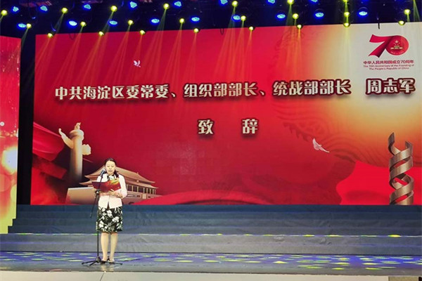 中共海淀区委常委、组织部部长、统战部部长周志军在致辞中指出,举办此次主题展演,是为了庆祝新中国成立70周年,展现海淀统一战线广大成员自觉接受中国共产党的领导,与祖国同行、与时代共进的合作初心、坚强决心、坚定信心和赤忱真挚的爱国情怀、奋发有为的精神面貌,凝聚起推动海淀新发展、建功海淀新时代的磅礴力量。海淀统一战线具有全要素、高层次、宽领域、重创新的特点,聚集着大量高素质、高层次的创新人才,在经济、政治、文化、社会和生态文明建设等各方面充分发挥特色优势,积极融入中关村科学城建设,凝心聚力、献计出力,为推动海淀持续创新发展做出了重要贡献。希望统一战线广大成员以庆祝新中国成立70周年主题教育活动为契机,牢固树立“四个意识”,坚定“四个自信”,做到“两个维护”,继续与中共海淀区委一起携手,以新担当新作为开创新时代区域创新和跨越式高质量发展新局面,在追梦创新驱动之路上续写中关村创新发展新辉煌,为加快建设具有全球影响力的全国科技创新中心核心区做出新的更大贡献,以优异成绩庆祝新中国成立70周年。