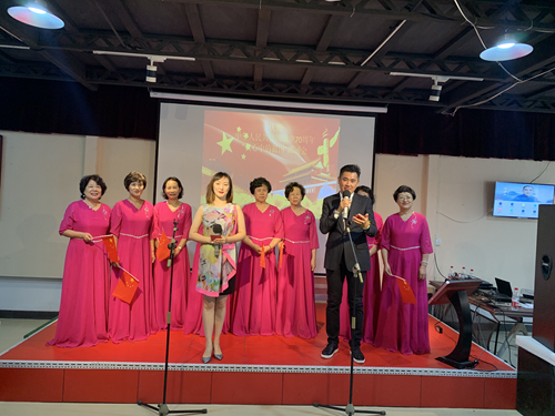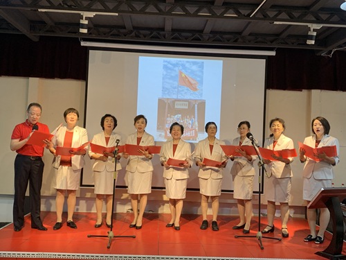 党员们欢聚一堂,倾情抒发对伟大祖国的热爱和祝福。海淀八支党员虞乐的诗朗诵《中华颂》为大家呈现出“壮哉中华,雄踞东方”的气魄;应邀参加活动的丰台区工委副主委张绍勇以一曲《祖国万岁》唱响了祖国70年的风雨兼程,70年的豪情满怀;中国农科院支部创作的诗朗诵《自豪的中国农科人》歌颂了一批奋斗在农业第一线,为人民美好生活贡献出青春的民革人;海淀一支党员王宁和丰台一支党员李文梅朗诵《我与民族英雄佟麟阁同名》娓娓道出了佟麟阁小学与民族英雄佟麟阁的渊源和爱国主义精神的传承;海淀十一支党员白双忠作词一首《满江红-庆祝中华人民共和国70周年》,在党员李竹凌的朗诵中尽显古体诗词之美,彰显出中国文化的博大精深;来自丰台四支部的嘉宾郑祥振演唱京剧《沙家浜选段-祖国的好山河寸土不让》表达了克服艰难险阻,也要保卫祖国领土、捍卫民族尊严的决心;北京体育大学支部的新党员王静用英文讲述了《民革的历史使命》,让大家充分了解民革肩负的光荣历史使命,并领略了英文之美;海淀十一支党员齐欢用真实的故事朗诵了《我要回家,我要回家》,呼唤台湾赤子早日归来,令人潸然泪下;海淀六支党员原瑾泓、马文璐的诗朗诵《读中国》用声音回顾了华夏文明,照亮着富饶美丽的“一带一路”,呈现出开放的中国;来自海淀五支、九支、十支的“诤友合唱团”的党员以一曲女声小合唱《我和我的祖国》,通过优美动听的旋律和朴实真挚的情感,表达民革党员对伟大祖国的衷心依恋和真诚歌颂;伴随着与会领导和全体党员唱响《歌唱祖国》的歌声,将整场演出引向高潮。