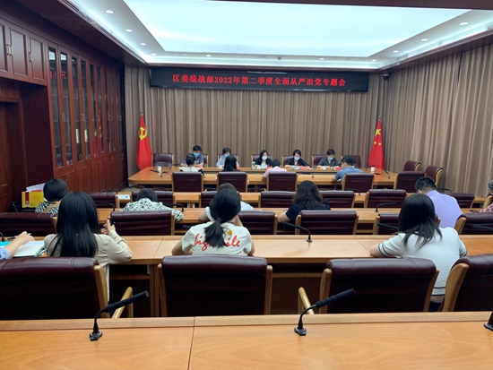 近日,海淀区委统战部召开2022年第二季度全面从严治党专题会,驻部纪检监察组组长赵红霞通报了市纪委监委近期通报的典型案例,区委统战部常务副部长刘珍通报了2021年全面从严治党(党建)工作考核结果暨政治生态分析研判问题清单反馈意见和整改工作方案。区委常委、统战部部长牟晓春出席会议并讲话。区委统战部、驻部纪检监察组和区社会主义学院全体党员干部参加会议。