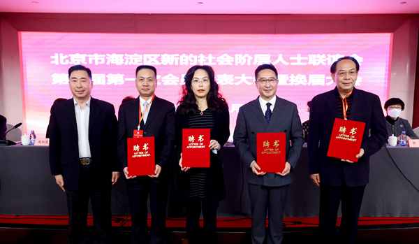 新当选会长付英波和荣誉副会长代表沈腾分别作表态发言,表示会与各位领导班子成员和全体理事、会员一起,提高思想认识,认真履职尽责,努力团结广大新的社会阶层人士,为海淀区新时代高质量发展凝聚新力量。