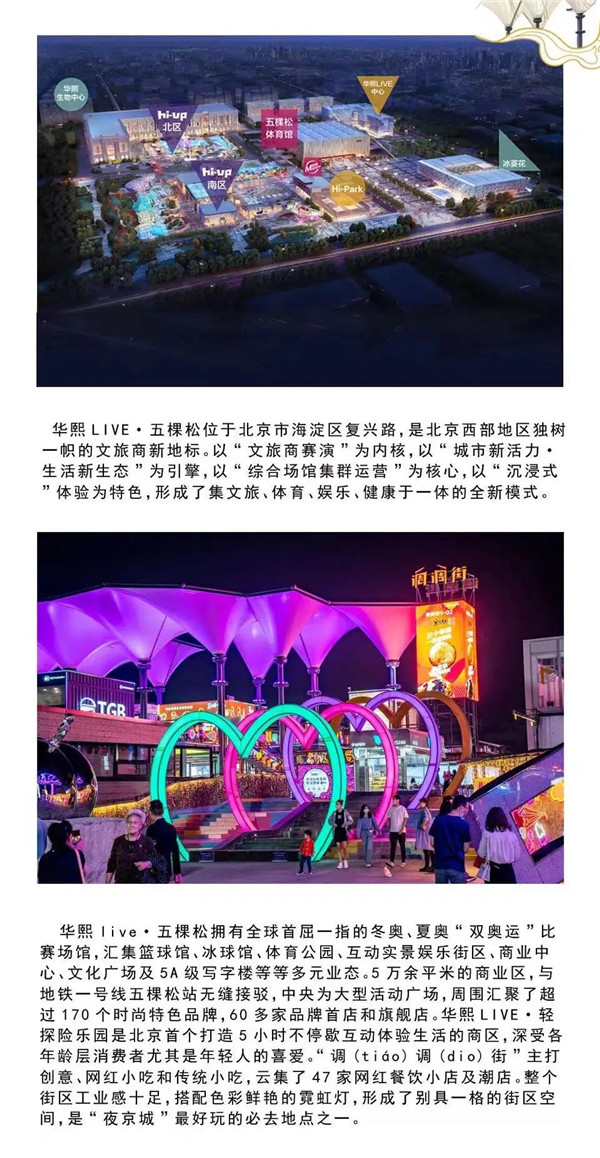 京西吃喝玩乐的圣地华熙LIVE·五棵松,其打造的五小时生活圈涵盖了,从购物、餐饮、休闲、比赛、演出等,生活的方方面面这里已经成为了京西休闲生活的核心地标。