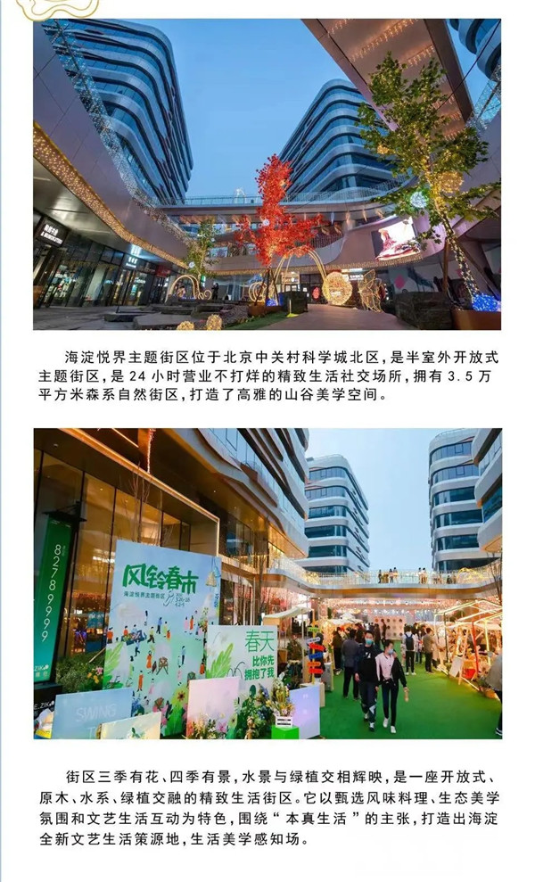 同时在近日市文化和旅游局发出的“2021北京市旅游休闲街区公示名单”,首批“市级旅游休闲街区”中,共计12个街区入选除了华熙LIVE·五棵松,海淀悦界主题街区也上榜啦!