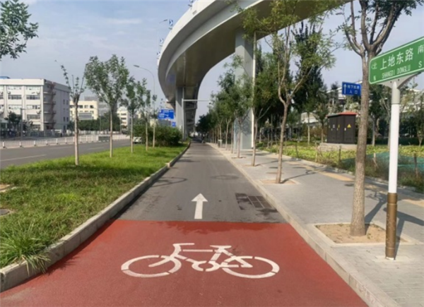 建设完成的上地东路、安宁庄西二条的非机动车道达到了3.5米和3米,且都采用了绿化带进行机非隔离,更加保障了慢行出行安全。