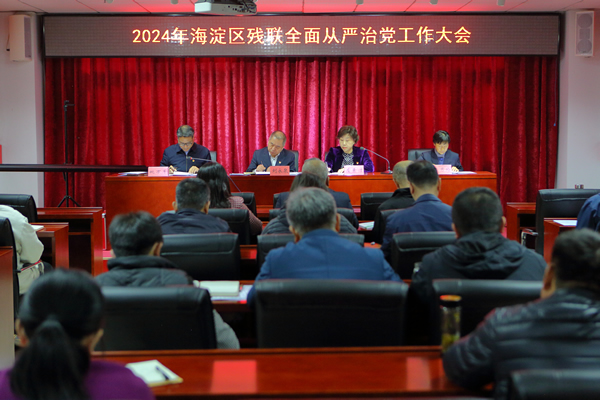 为全面贯彻落实党的二十大和二十届二中全会精神,深入学习贯彻习近平总书记关于党的建设的重要思想和关于机关党建的重要指示精神,认真贯彻落实市委、区委工作部署,3月28日,海淀区残联召开2024年全面从严治党暨党建工作大会。区残联党组书记、理事长刘永泉,区纪委区监委驻区委社会工委、区民政局纪检监察组组长左素洁,区残联党组成员、副理事长姚万军,区残联理事陈秀玲,区残联党风政风监督员和全体机关干部参加本次会议。会议由姚万军主持。