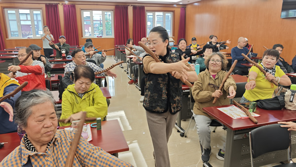 此次活动特别邀请了中医养生专家为聋人朋友讲解擀筋棒的使用技巧。擀筋棒作为中医传统保健工具,能够有效缓解肩颈酸痛、促进血液循环。专家结合老年人的健康特点,从擀筋的基本原理、操作要点到注意事项,进行了深入浅出的讲解。
