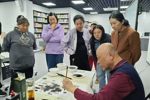 在实践互动环节,张老师重点演示水墨调配技法,通过控制墨色比例,现场调出浓淡各异的墨色,直观讲解墨色在国画创作中的层次表达与审美价值。随后,老师以“叶子”为具象范例,从构图布局、用笔技巧到墨色晕染,深入浅出地拆解国画入门技法,引导学员们在笔墨流转中体会中国画的独特韵味。学员们全程专注投入,认真记录、积极互动,笔尖在纸上缓缓游走,墨香在现场悄然弥漫,课堂氛围温馨融洽,满是对传统文化的热爱与探索热情。