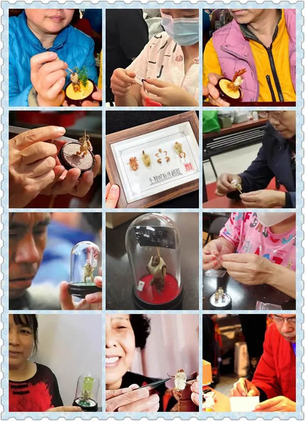刘老师在直播间以幽默的教学风格、“接地气儿”的教学方式,为残疾人朋友及亲友讲解了毛猴的起源、背景和制作材料等理论知识。“毛猴儿的用料虽简单,但是手工艺人用他们的巧思赋予了毛猴儿深厚的艺术价值和社会价值,手工艺人凭着对社会上各种人物形象的观察和个人的感性认识,做成了千姿百态的毛猴儿艺术品。”刘老师说。残疾人朋友们在刘老师的带领下,一步步跟随步骤,利用蝉蜕、辛夷、白芨、木通、胶水等几种简单的材料,拼接组合、尝试调整,制作出了一个个活灵活现毛猴儿,并将自己的作品分享到群内与大家交流。