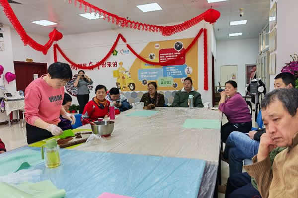 活动现场,来自如常的专业面点师李春凤以“手把手教学”模式,带领学员们解锁奶黄包、香吉馍、驴打滚三款经典面点的制作技艺。从鸡蛋与牛奶的黄金配比,到黄油与面粉的巧妙融合,学员们在反复揉打中体会“慢工出细活”的匠心;从面团发酵的精准把控,到馅料包裹的层次美学,每一道工序都凝聚着东方饮食“形与味”的哲学。当白白胖胖的奶黄包出笼、金黄酥香的香吉馍成型、软糯甜美的驴打滚滚落豆粉,现场掌声与赞叹声此起彼伏,学员们不仅收获了舌尖上的满足,更在操作中释放压力、重拾自信。