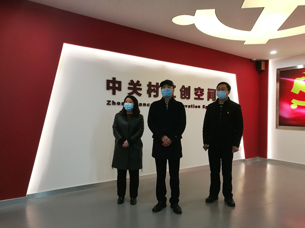 在中关村科学城党工委委员、科学城管委会专职副主任吴宝华的陪同下,调研组一行来到中关村红创空间,听取了中关村红创空间基本情况介绍:中关村红创空间是中关村科学城党工委着眼文化与科技深度融合,立足园区党建工作实际推出的党建与科技融合集参观学习、教育培训、典型展示、访谈演播、对外宣传、会议服务等六大功能于一体的党群活动服务阵地。通过观看园区三十年党建发展历程展览,调研组成员了解了园区工委非公企业党建走过的“扛着党旗找党员”“吸引党员找党旗”“建好平台聚党员”三个发展阶段,回顾了科学城党建工作创新发展光辉历程、园区企业党建工作取得丰硕成果和科学城非公企业党建的创新理念。
