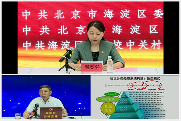 本次培训,首先是举行海淀区党员教育“云端党课”开班式,区委常委、组织部部长、统战部部长周志军作开班动员。而后特邀专家清华大学环境学院教授刘建国为大家作“党建引领新时尚,垃圾分类做表率”第一讲——北京垃圾分类的重大意义、历史使命和推行路径主题报告。