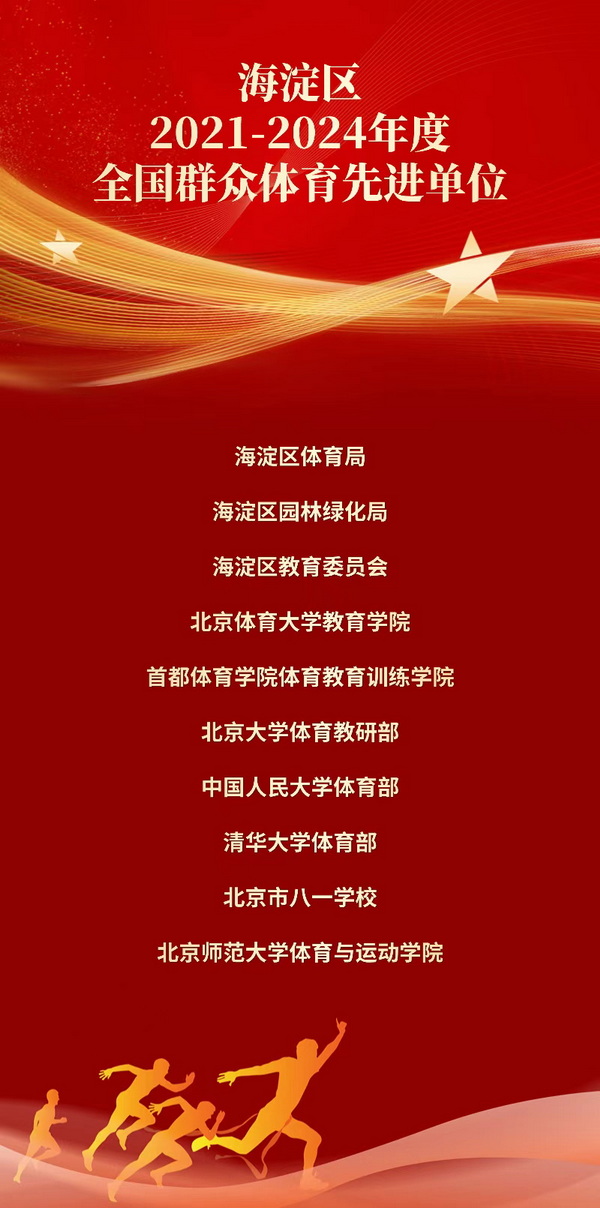据了解,全国群众体育先进和全国体育系统先进表彰是我国群众体育工作领域的最高荣誉,每四年评选一次。海淀区在此次表彰中的优异表现,充分体现了全区群众体育工作的系统性和创新性。