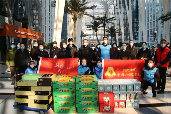 上地街道新时代文明实践所贝壳找房抗击疫情志愿服务队于2月10日在上地街道党工委的指导下正式成立。在这次疫情期间,贝壳找房抗击疫情志愿服务队始终驻扎在金隅嘉华大厦进行疫情防控值守,为陆续复工的企业员工开展体温测量、证件复查、大厦消毒,在停车场入口、大厦入口等参与疫情防控工作,包括测温登记,发放准入证等志愿服务工作,倡导大厦企业员工在大厦、电梯、办公室、会议室内遵守“一米线”文明线约定,还将口罩、防护眼镜、免洗消毒液等防疫物资送到金隅嘉华大厦物业,他们的坚守和付出得到大厦员工的尊敬和赞赏。