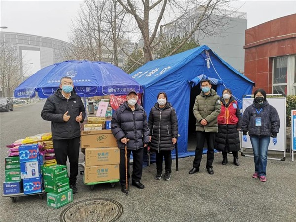 一大早,上地西里居民范例先生就从车上搬运酸奶、啤酒、纸巾、大米等慰问品。范先生说,这都是他从超市采购的,并送到社区值守的门口,想当面送给社区工作人员。