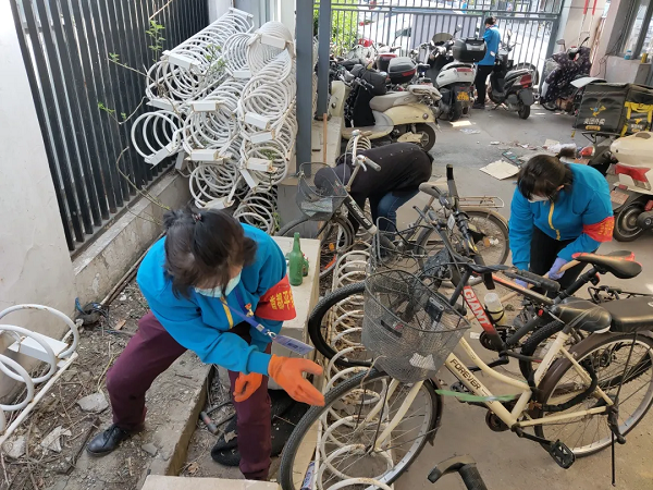 此次整治过后,车棚内的可用空间明显增多,让居民们的非机动车有了停放的地方。本次活动集中清理堆积杂物、陈旧垃圾等无用杂物10袋,消除卫生死角两处,使社区面貌得到了极大提升。