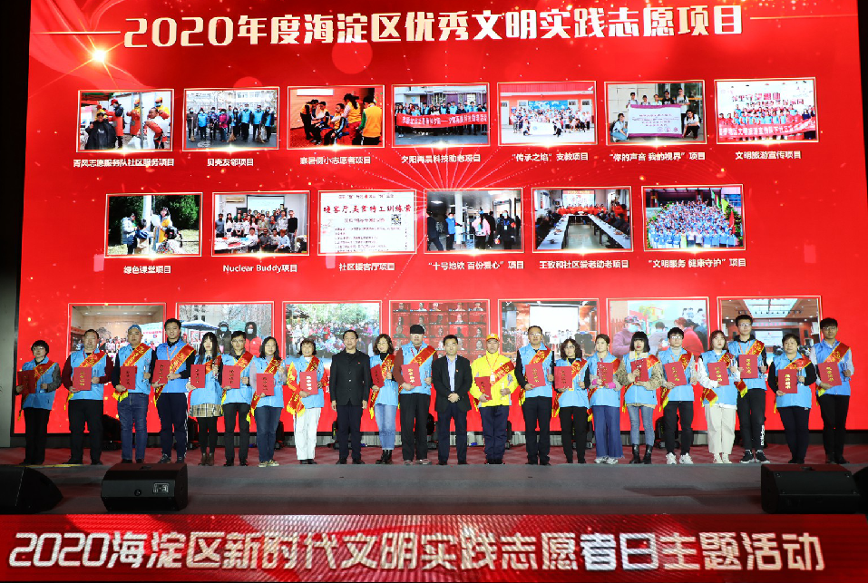 在“12·5”国际志愿者日来临之际,为落实党的十九届五中全会审议通过的《中共中央关于制定国民经济和社会发展第十四个五年规划和二〇三五年远景目标的建议》中关于“健全志愿服务体系,广泛开展志愿服务关爱行动”的指示精神,今天,海淀区隆重举行2020新时代文明实践志愿者日主题活动。