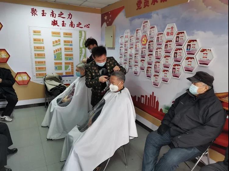 受疫情影响,玉南路9号社区内很多老年居民因年老体弱、行动不便,无法独自到理发店。