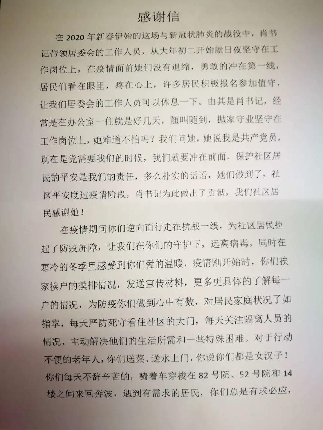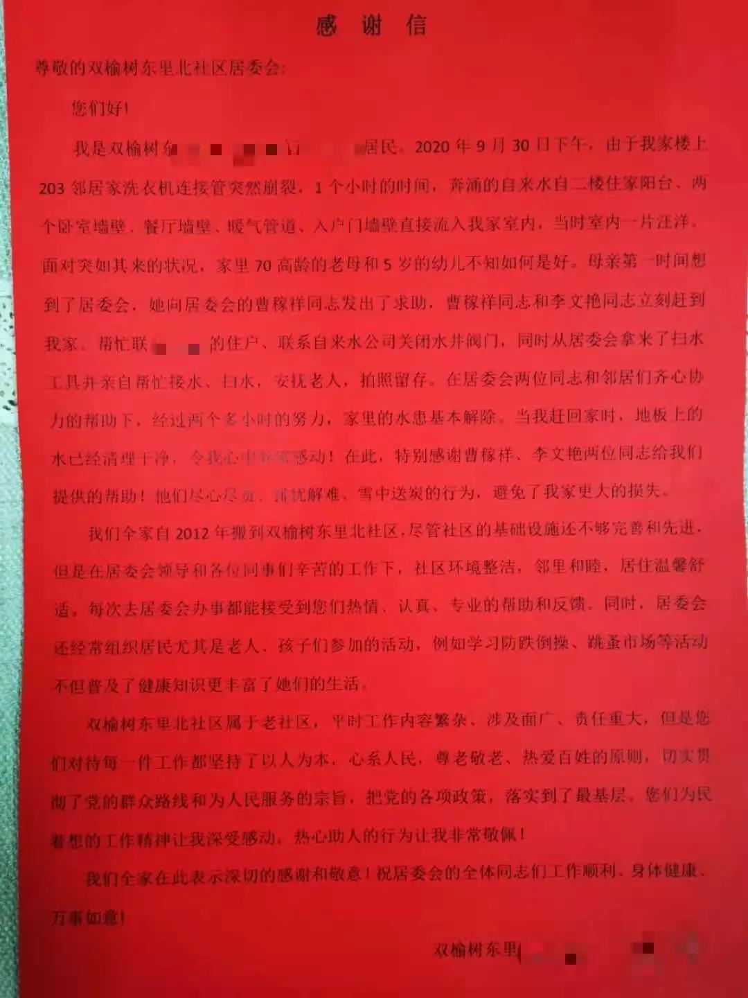 和居委会送来感谢信