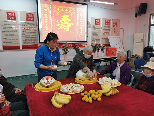 上午9点,活动在精彩的扇子舞中拉开序幕。活动还设有DIY插花体验环节,使老人体验动手制作的乐趣。插花结束后,老人们还共同品尝了寿桃,大家为高龄老人过了一个不一样的生日。在品尝寿桃的同时,大家还听取社区92岁老人分享长寿经验,其他老人也纷纷发表了自己的养生心得。活动现场欢乐多多,笑声不断。
