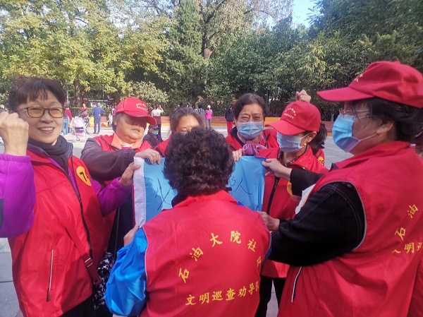10月15日,学院路街道石油大院社区党委、居委会、新时代文明实践站开展“石油大院社区文明劝导志愿服务队”团建活动。