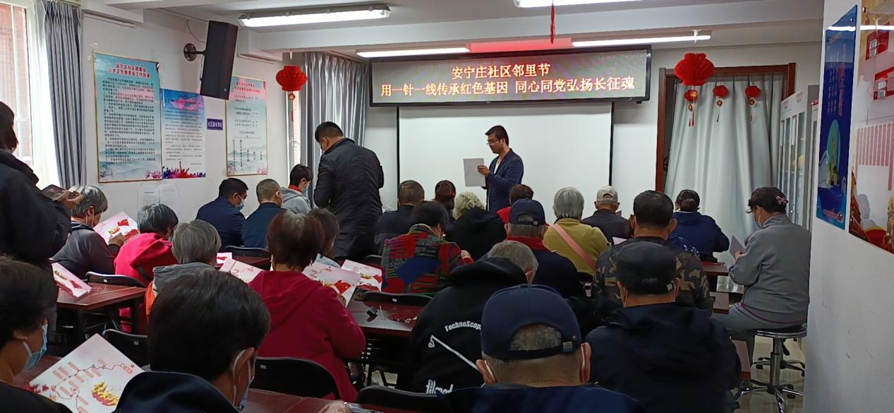 10月20日,安宁庄社区在北京市第三届“社区邻里节”活动开展之际,组织社区居民开展“用一针一线传承红色基因 同心向党弘扬长征魂”手工制作活动,携手社区居民创建社区和谐庭院,共同发扬革命优良传统。