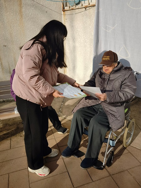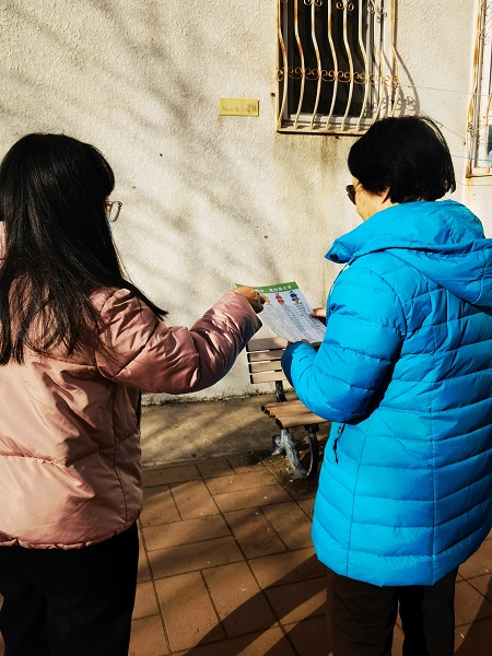 社区工作人员走进小区,一边为居民发放宣传页,一边为大家宣传讲解生活垃圾分类的意义、标准、方法、好处以及垃圾处置不当的影响与危害。