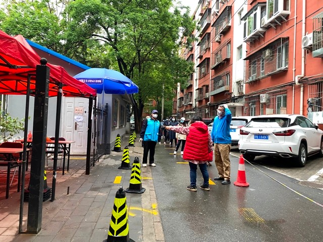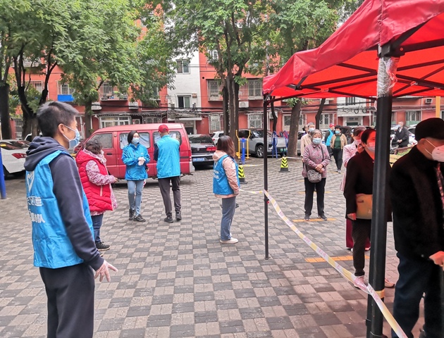 社区老党员刘老师说到“社区工作人员和志愿者的辛苦付出,小区居民们都看在眼里,感动在心里。社区书记刘岩冲在前面,亲力亲为!谢谢你们守护我们的健康和安全!”